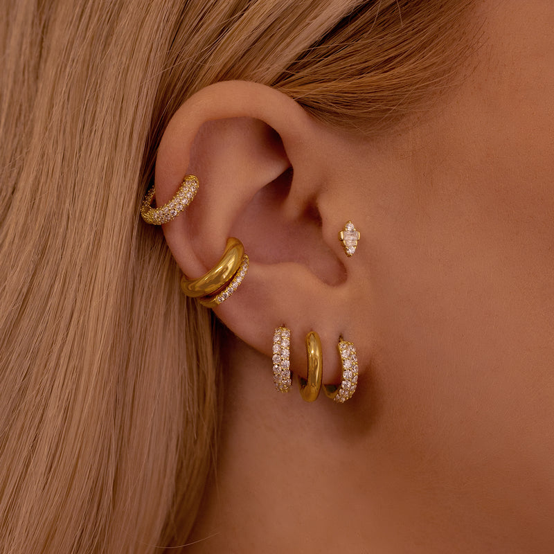 Delicate, classic pave huggie earrings you can wear everyday. Upgrade your eardrobe with this sparkly piece that’s handcrafted in 14k gold vermeil.