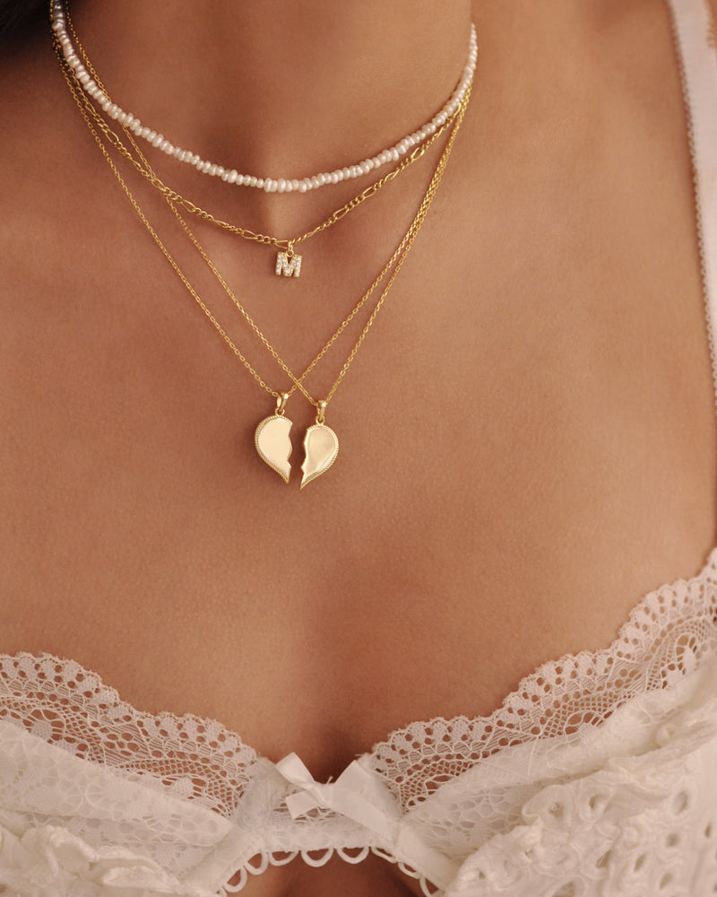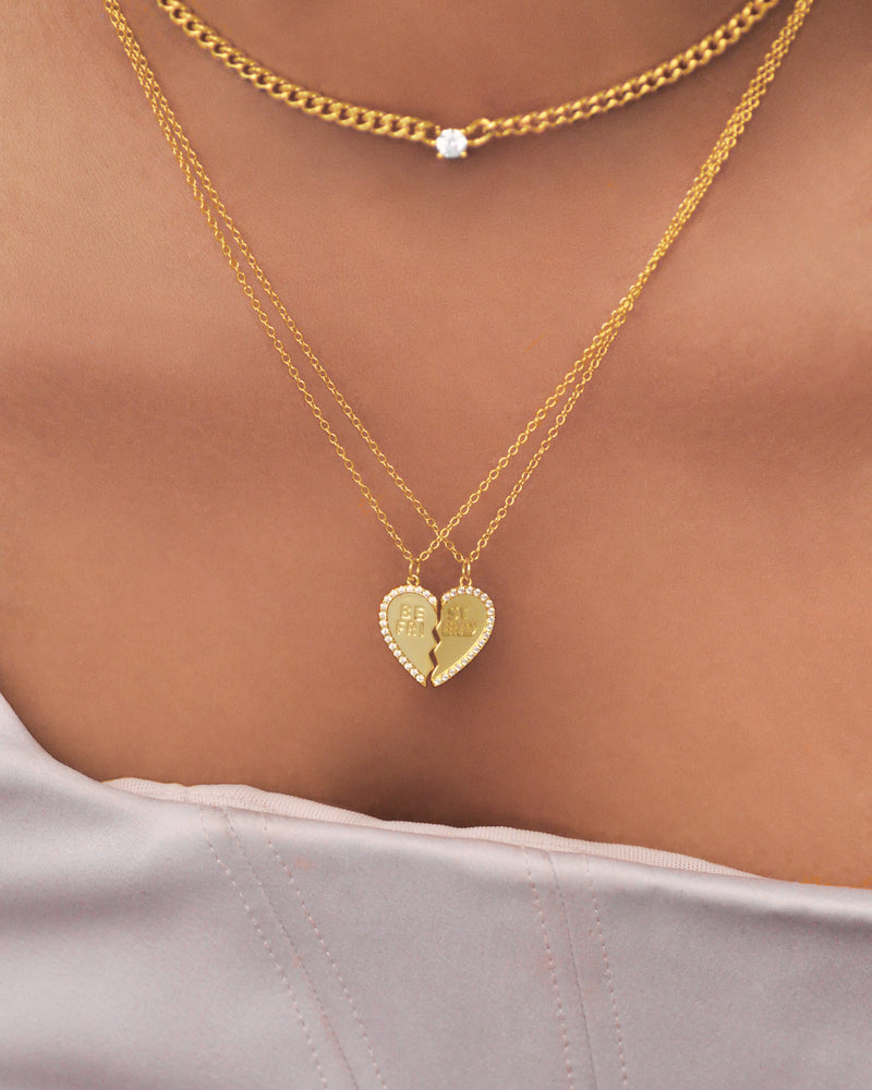 The Best Friend Heart necklace is designed to be shared between you and your best friend, or other meaningful person. Share one half of each charm with the person that matters most