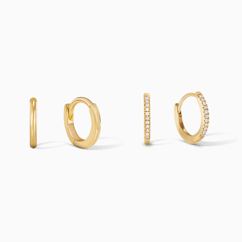Save 20% when buying them together. A match made in heaven, the Classic Gold Huggie Earring Set.