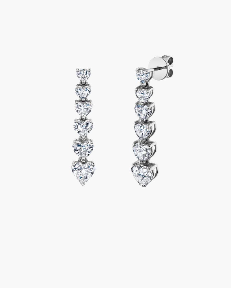 Heart Graduated Drop Earrings - Featuring 6 graduating moissanite gemstones, these earrings create a captivating cascade effect. Add a touch of sparkle to any outfit with this must-have accessory for your collection.