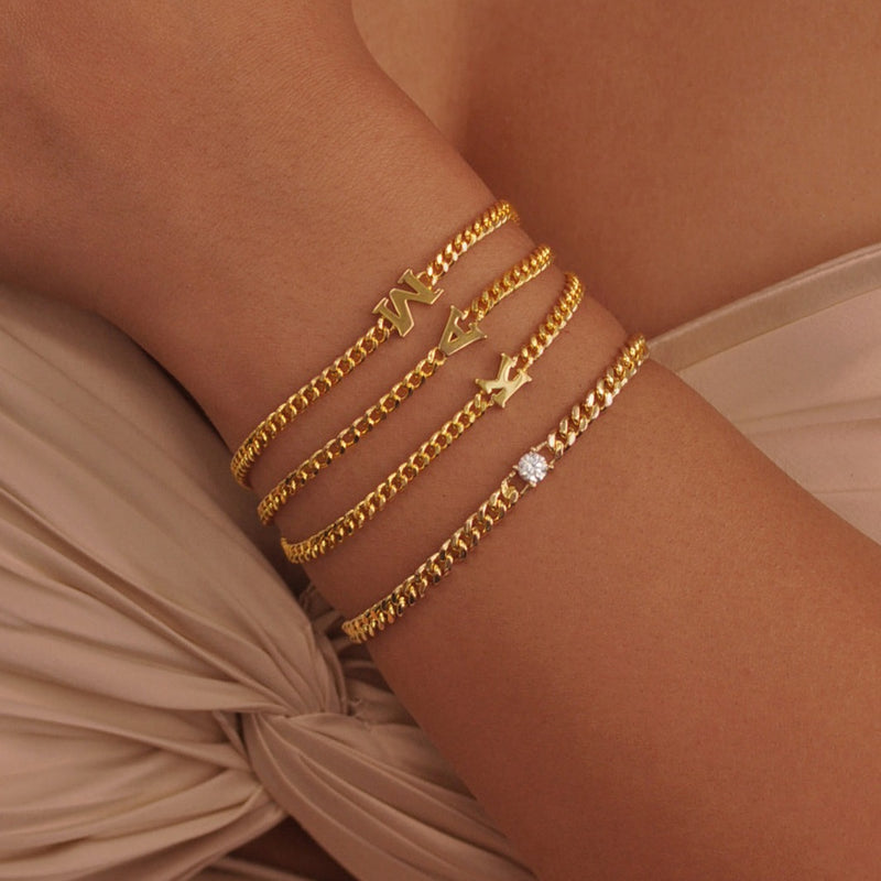 A timeless piece with a personal touch. The Initial Curb Chain Bracelet features a block letter pendant on our signature curb chain — designed to be worn every day, layered or solo. Choose your own initial or that of someone special to carry with you always.