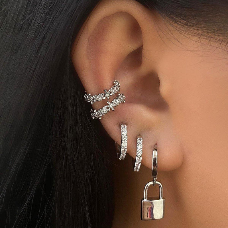 Silver Lock Hoop Earrings