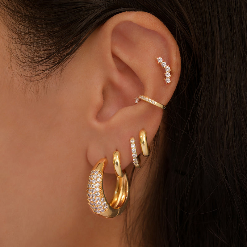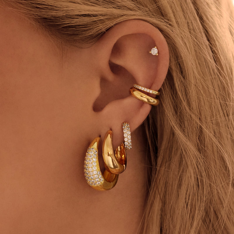 Sahara Hoops is elegant and classic. The gold hoops is handcrafted from gold vermeil and illuminated with a shimmering cz crystals. Wear yours solo or stacked with your favourite huggie earrings.