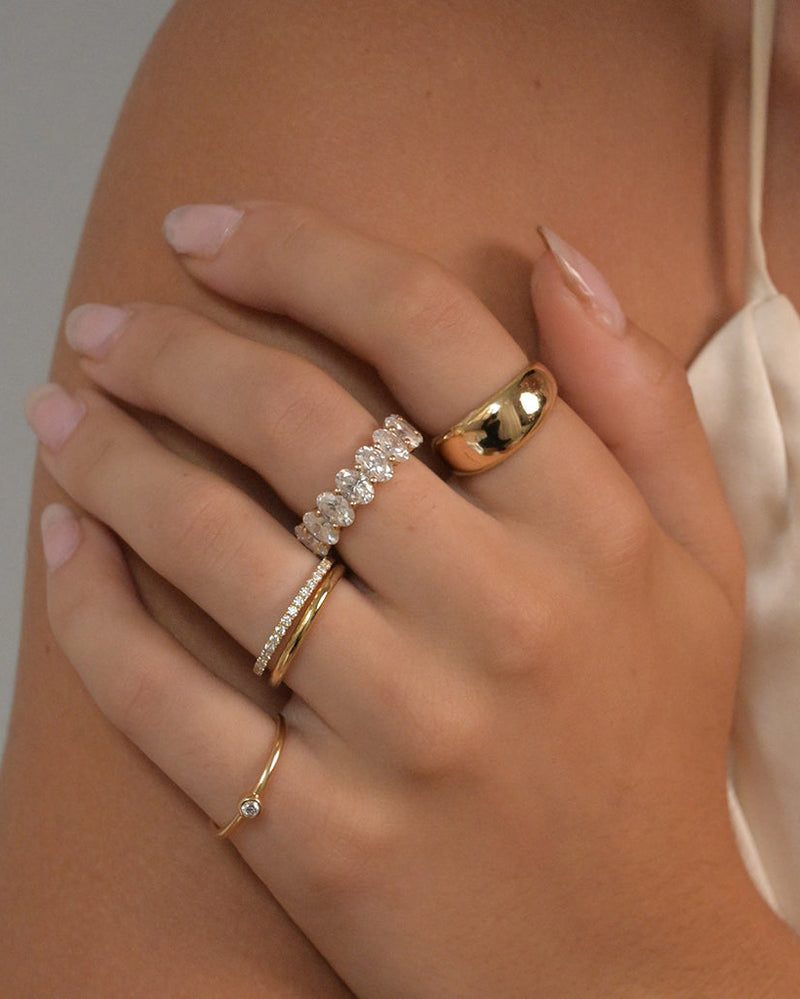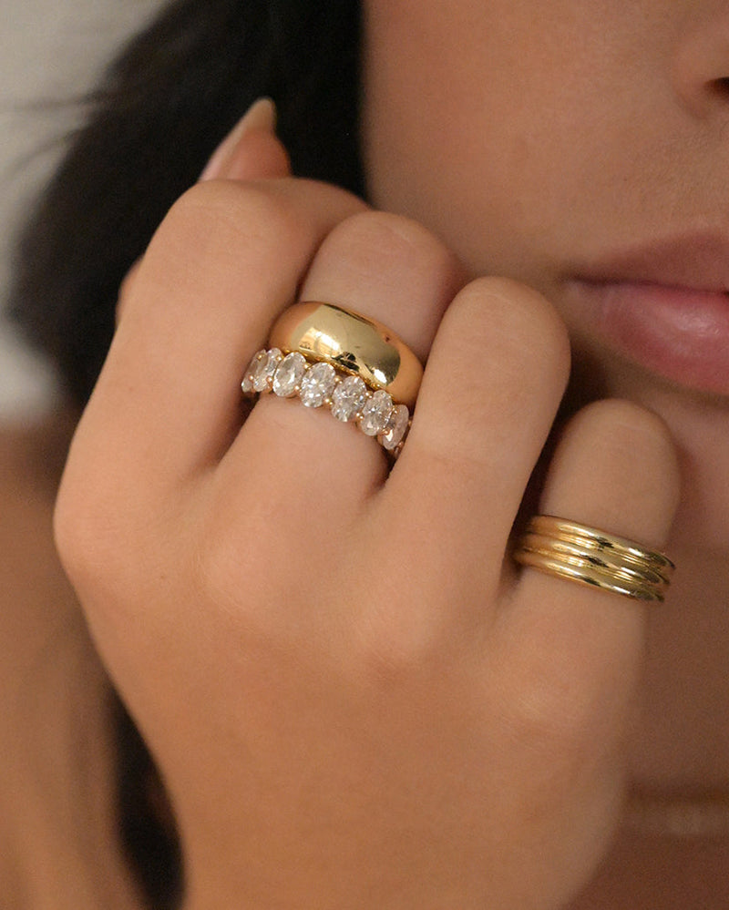 Lab Grown Moissanite - crafted in 18k Gold Vermeil. The Oval Eternity Ring features oval cut gemstones in a prong setting, which lets their brilliance shine from all angles. Wear it alone for timeless elegance or stack it with other rings to create a look that’s uniquely yours.