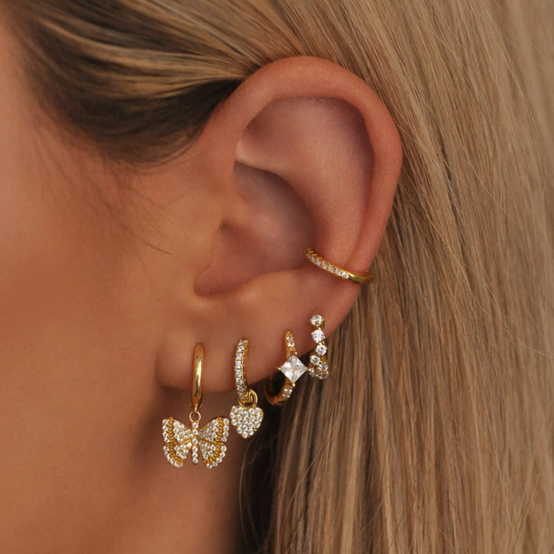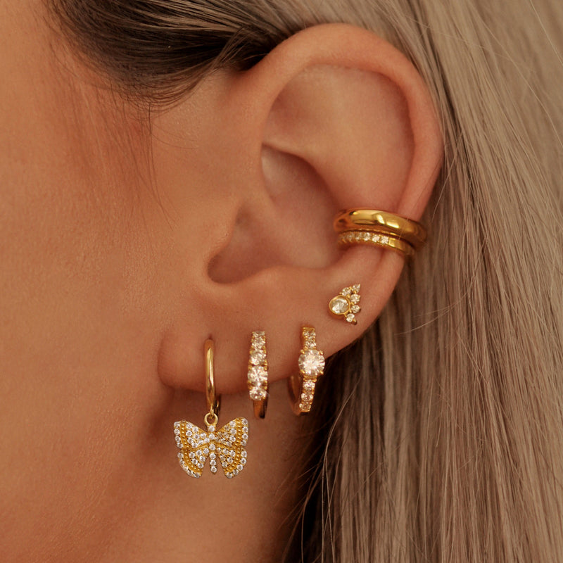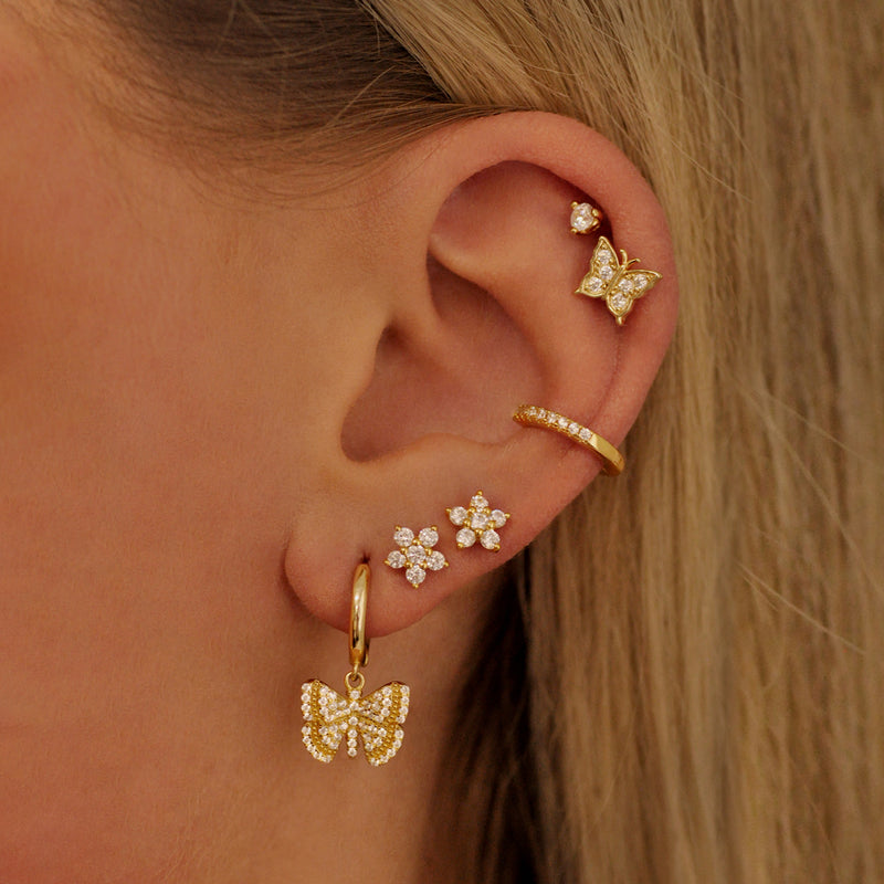 The enchanting pair of Pave Butterfly Huggie Earrings are made for dreamers. The sweet butterfly earrings feature a unique butterfly charm adorned in shiny crystal paves.