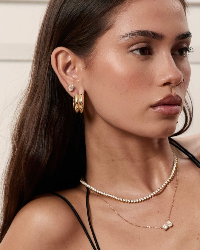 Crafted with a beautifully designed strand of clear CZ stones set in 18K gold, the Tennis necklaces adds a polished, yet glamorous vibe. Perfect on its own or layered with other pieces.