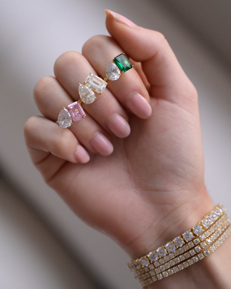 The ultimate statement ring, Toi et Moi - “you and me". Available here in three color combinations - white, yellow and emerald green